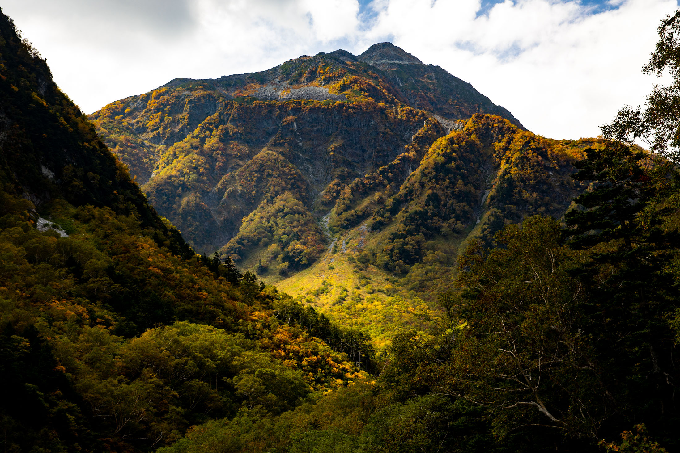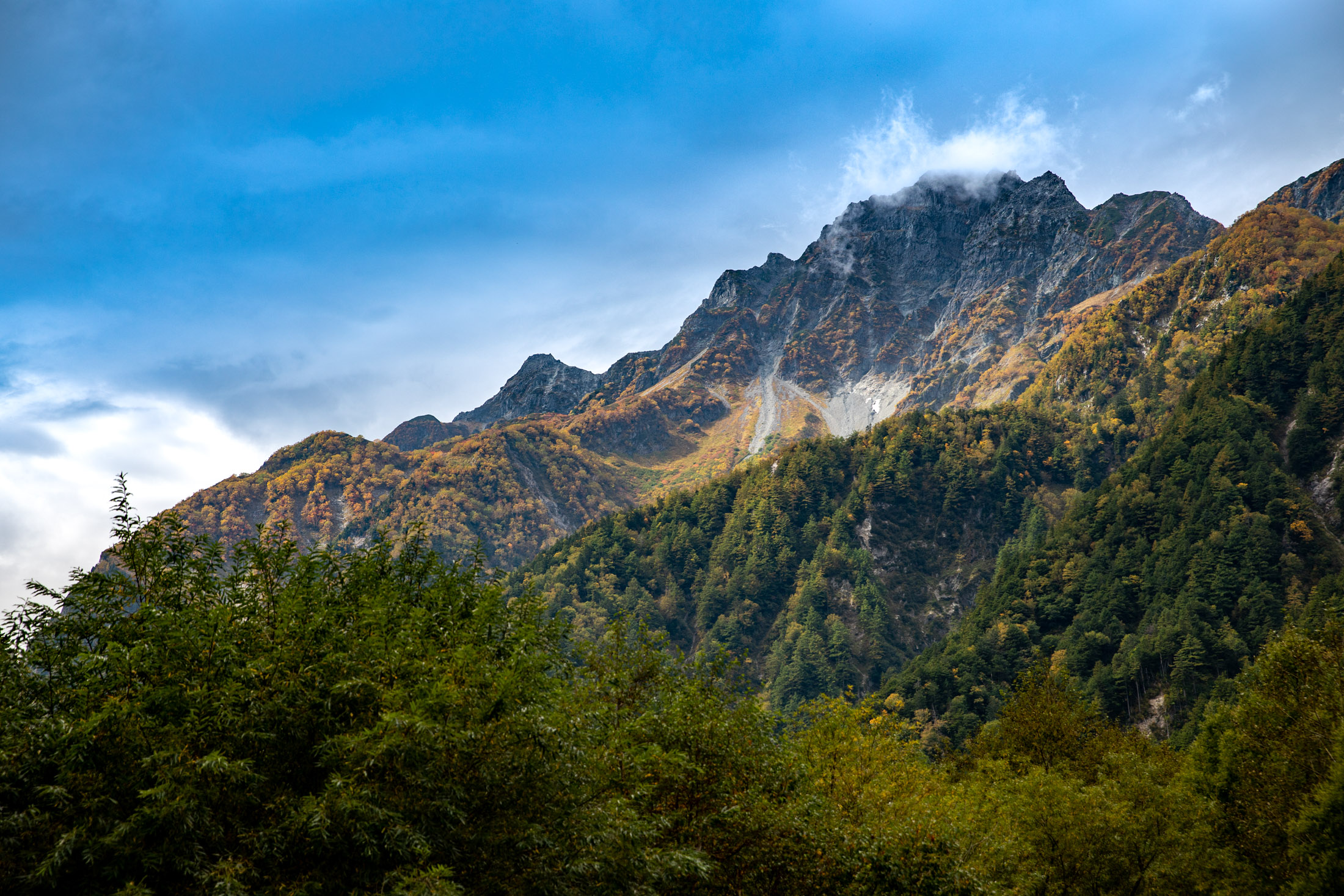 Natures autumnal splendor paints towering peaks in vibrant hues.