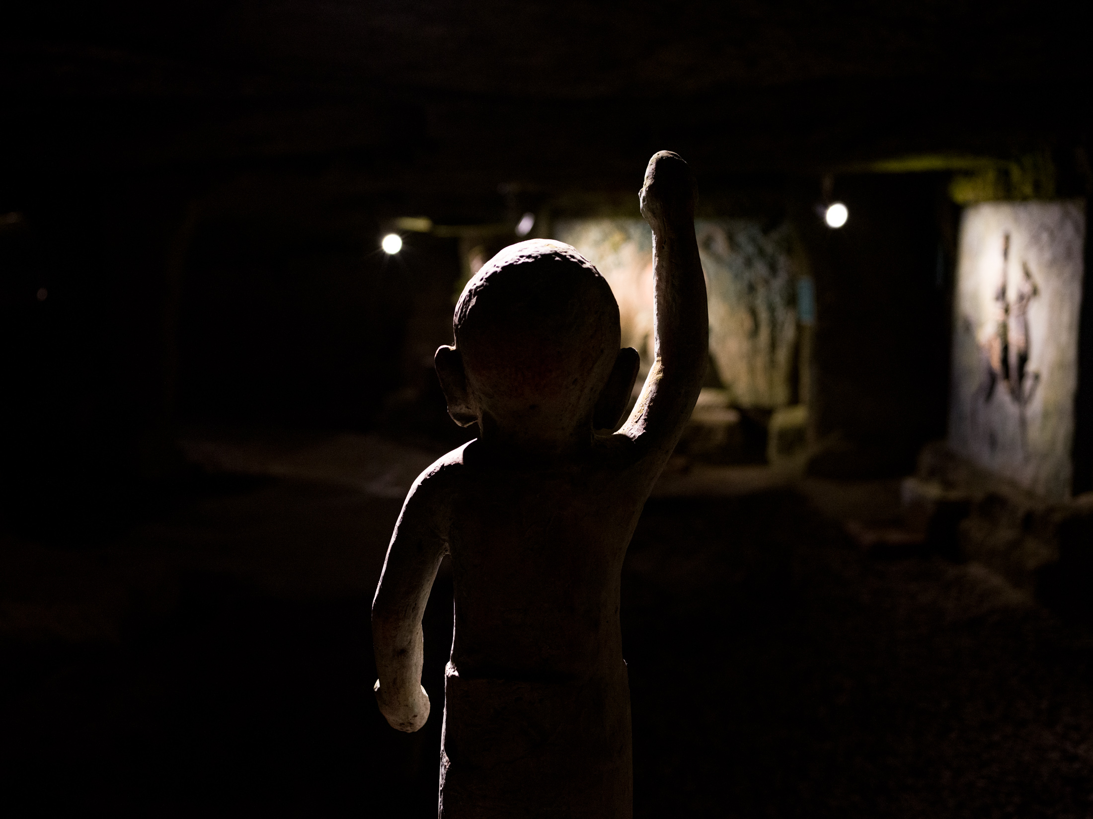 Yuma Tsugatas Sculpted Figure in Illuminated Hanibe Caves
