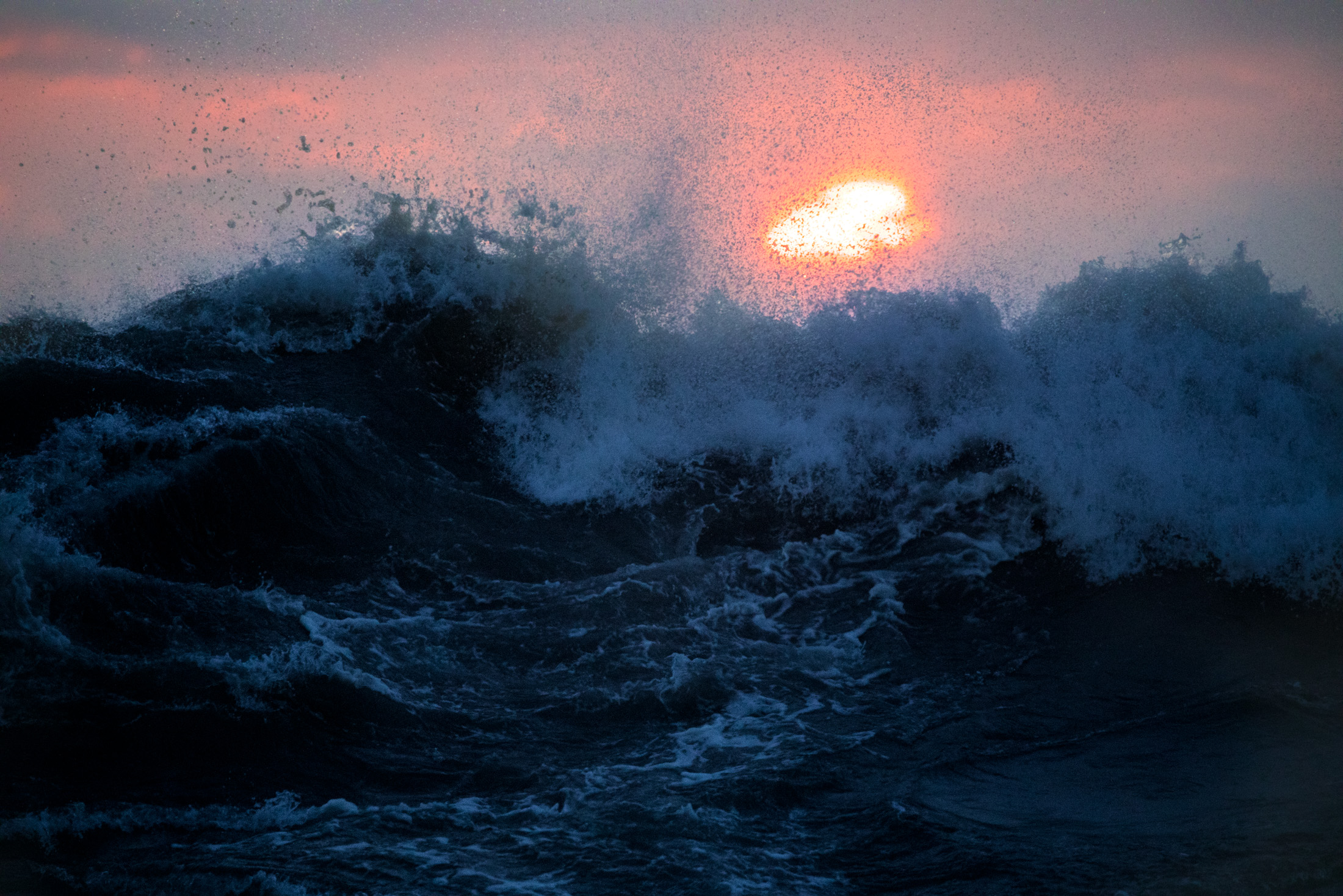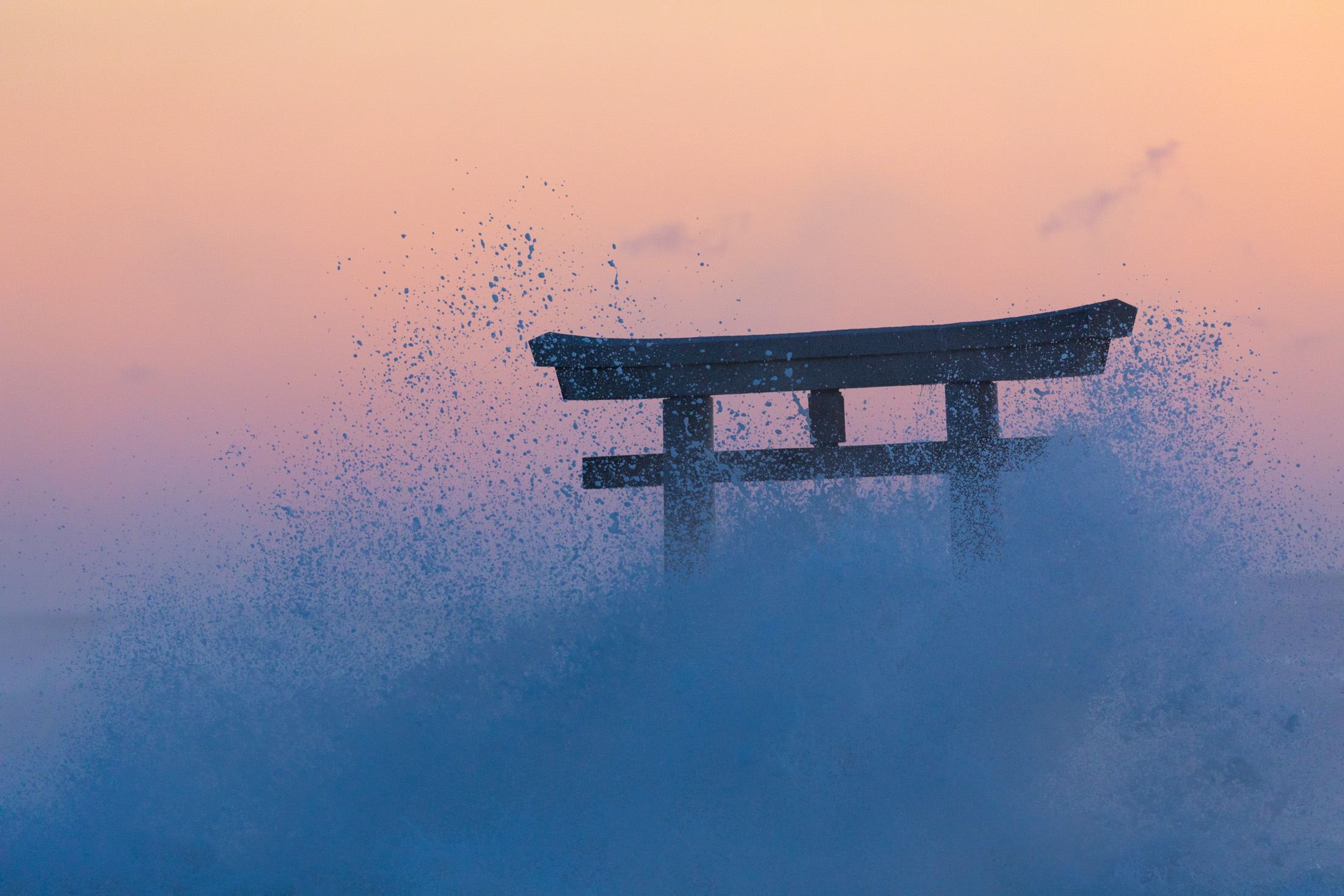 Dramatic sunset waves crashing at Oarai Isosaki Shrine.