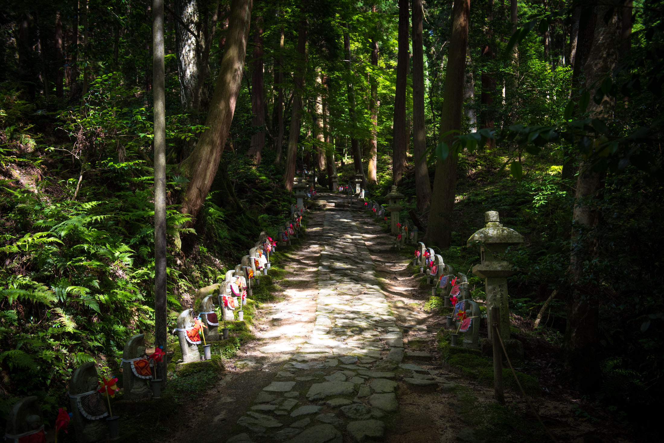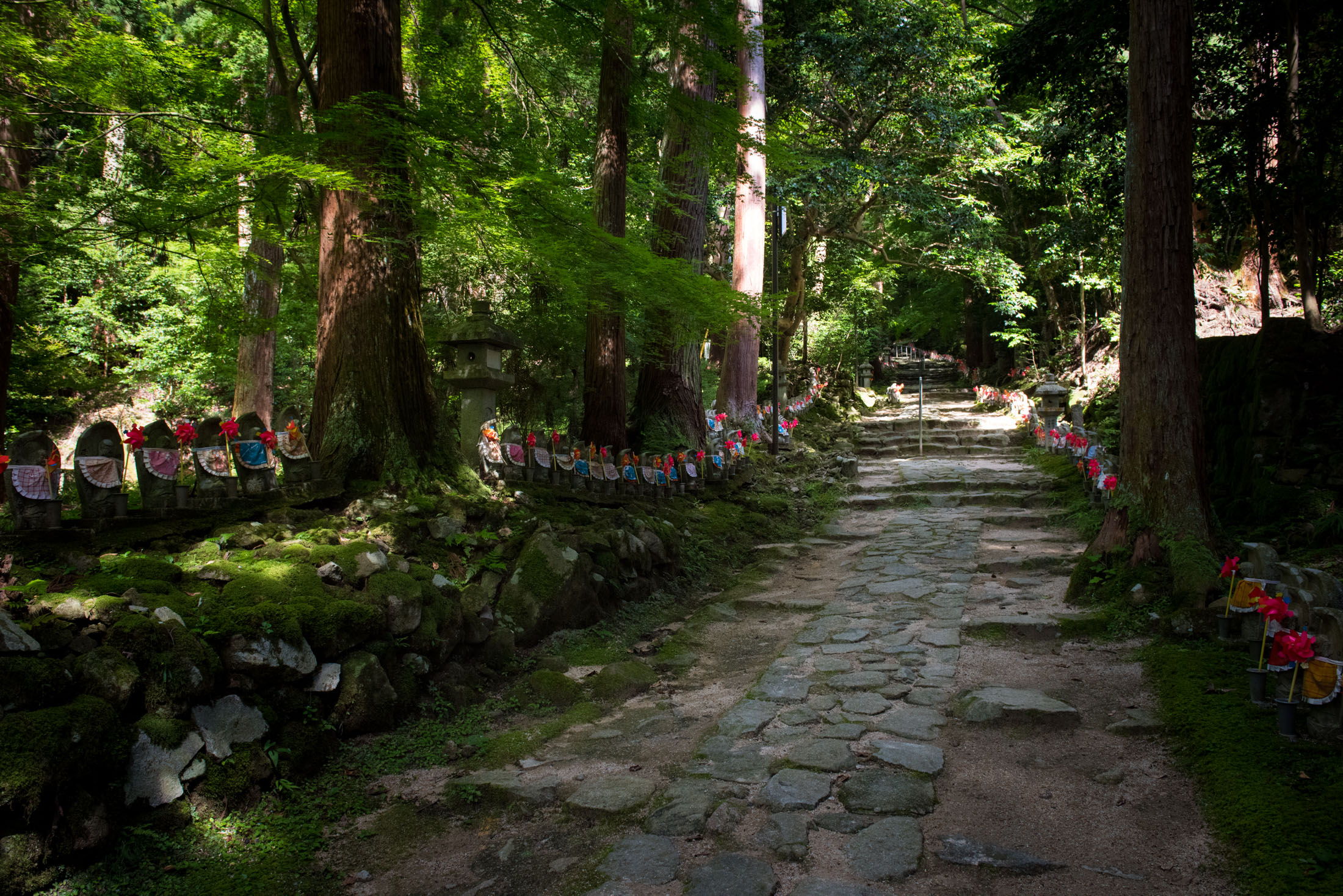 Stone Path to Kongōrin-ji Temple, Jizō Statues in Forest