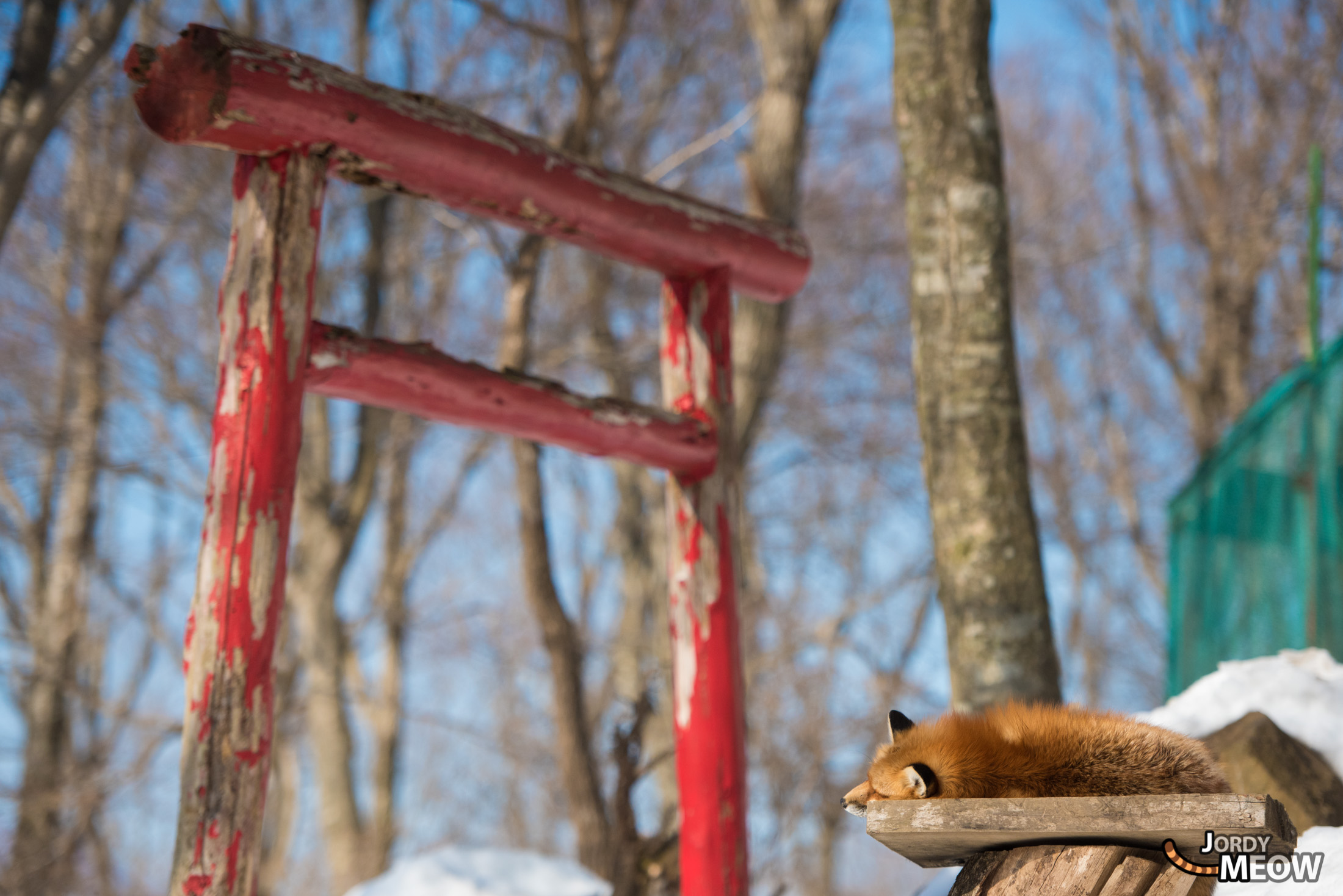 Exploring the sacred sanctuary of playful foxes amidst a serene winter landscape in Japan.